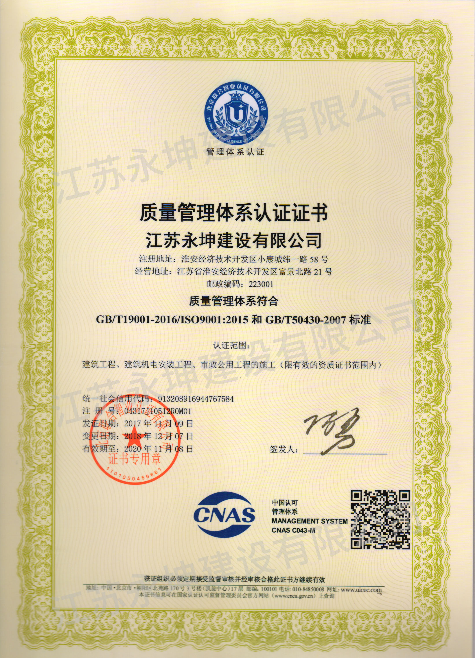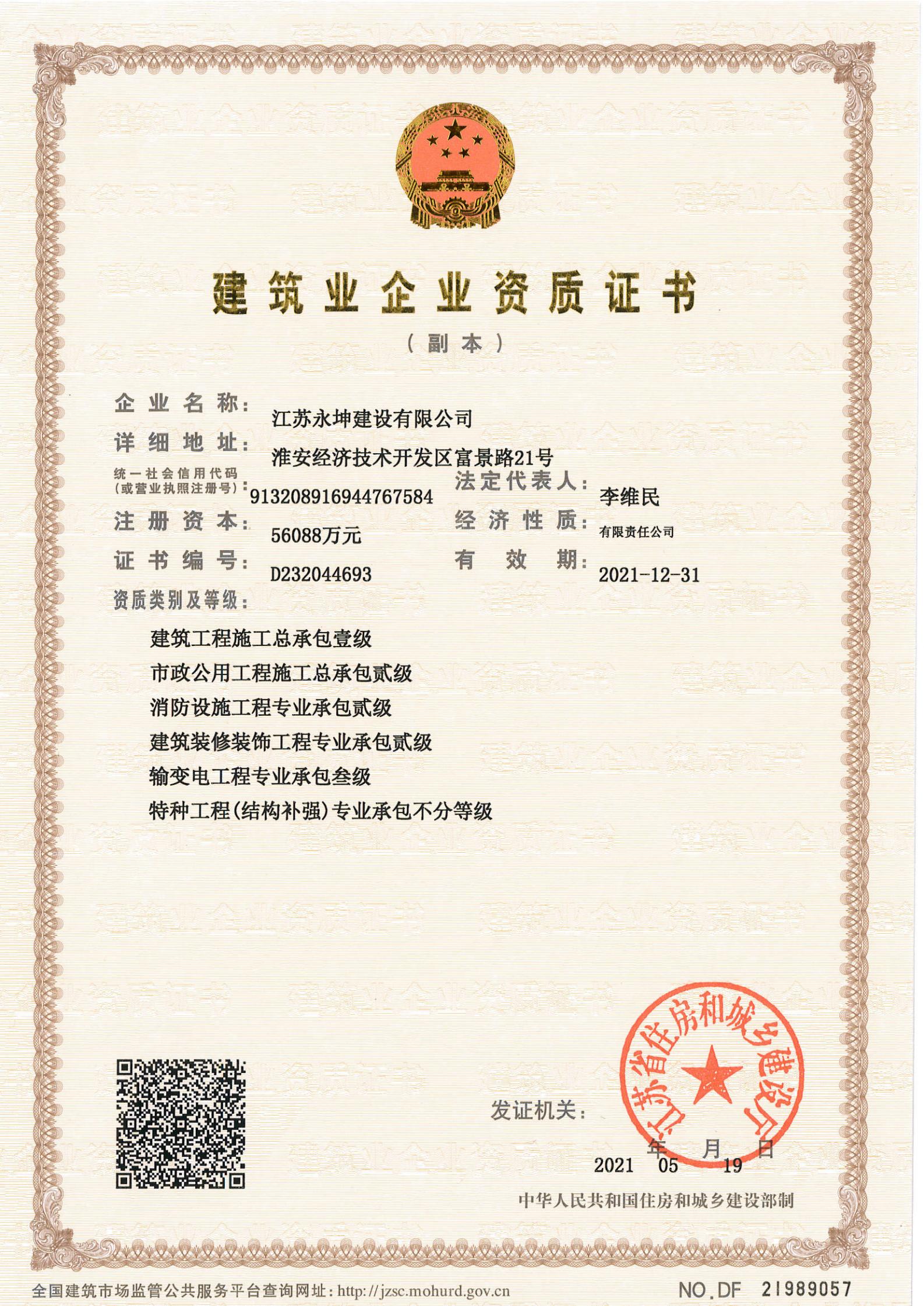 多年來,永坤建設由雉嫩走向成熟,走過了不平凡的創業發展歷程,迅速成為江蘇乃至全國一支能征善戰、敢打敢拼的建筑生力軍。這是永坤建設秉承“做一方工程,樹一方形象,創一方品牌,交一方朋友”誠信準則的真實寫照,更是永坤人敢打硬仗、善打硬仗“鐵軍精神”的有力見證。